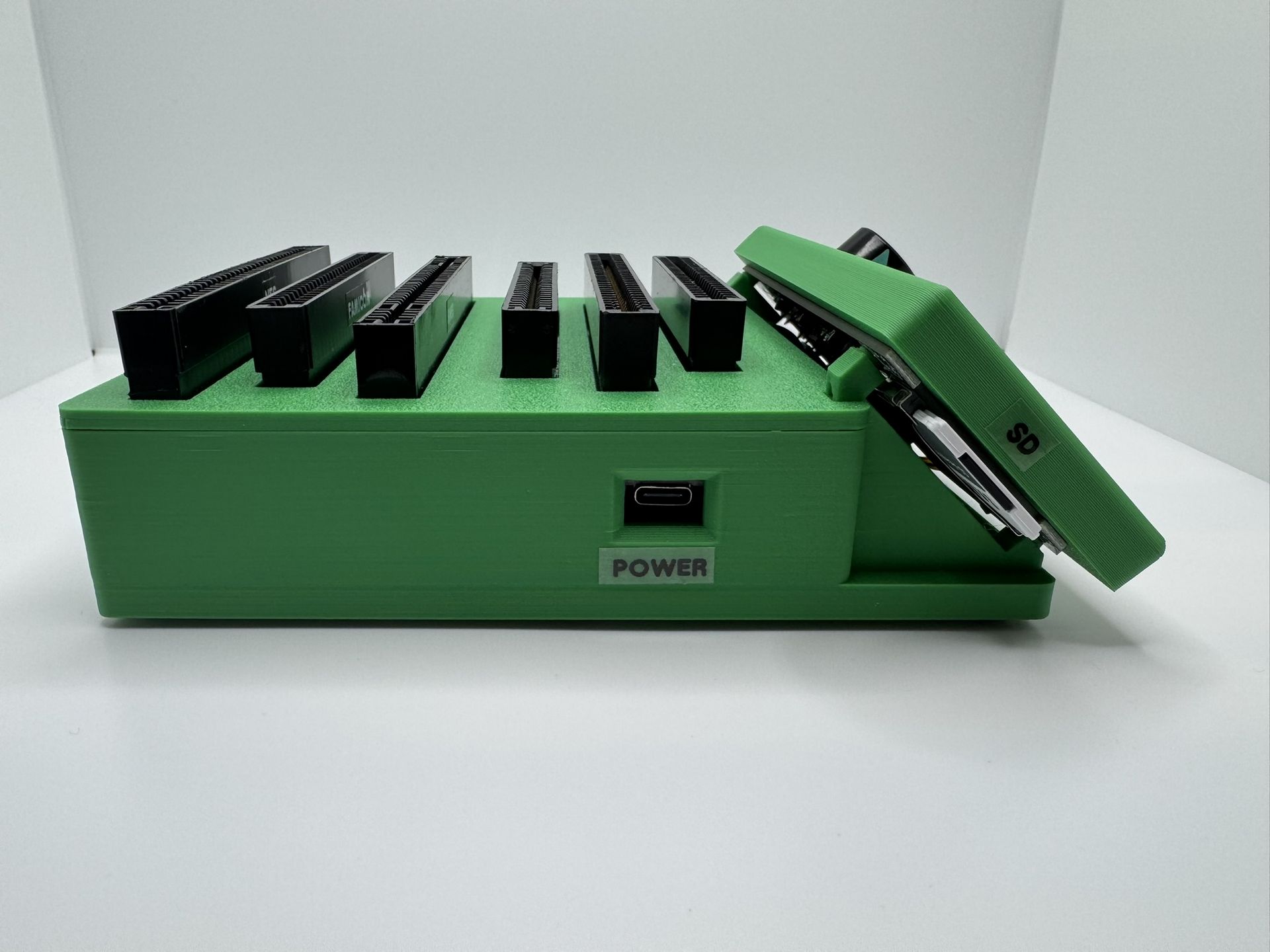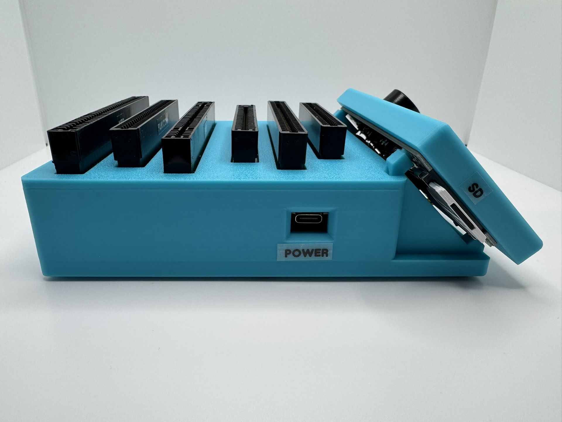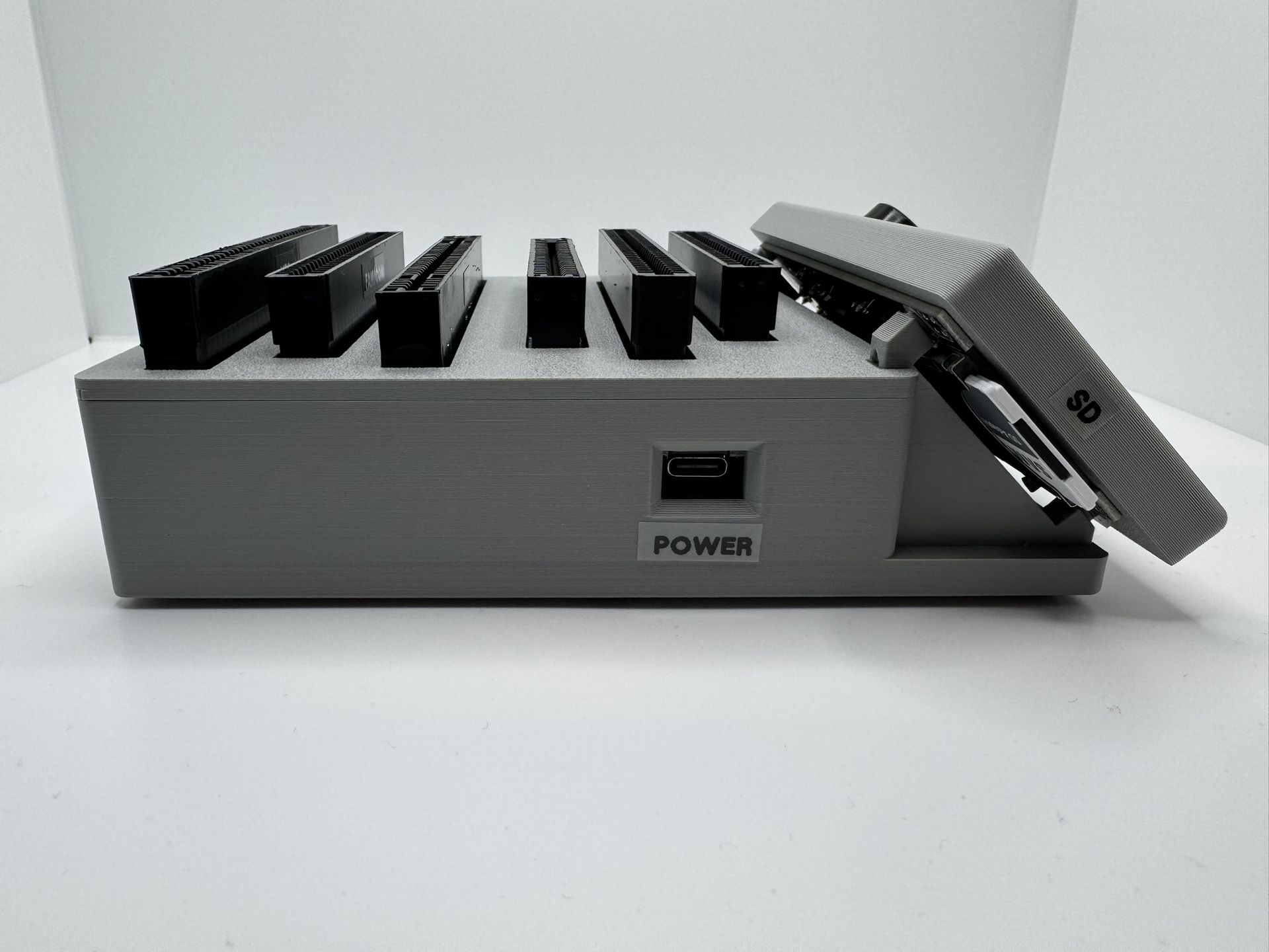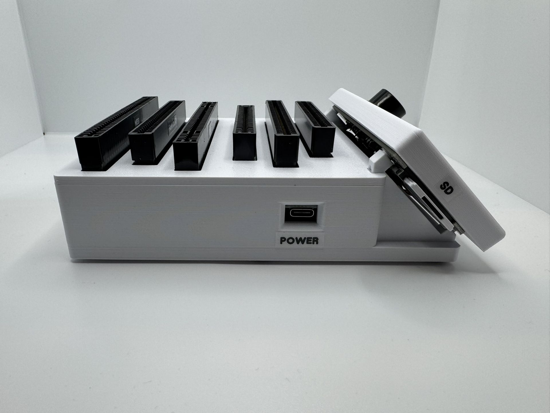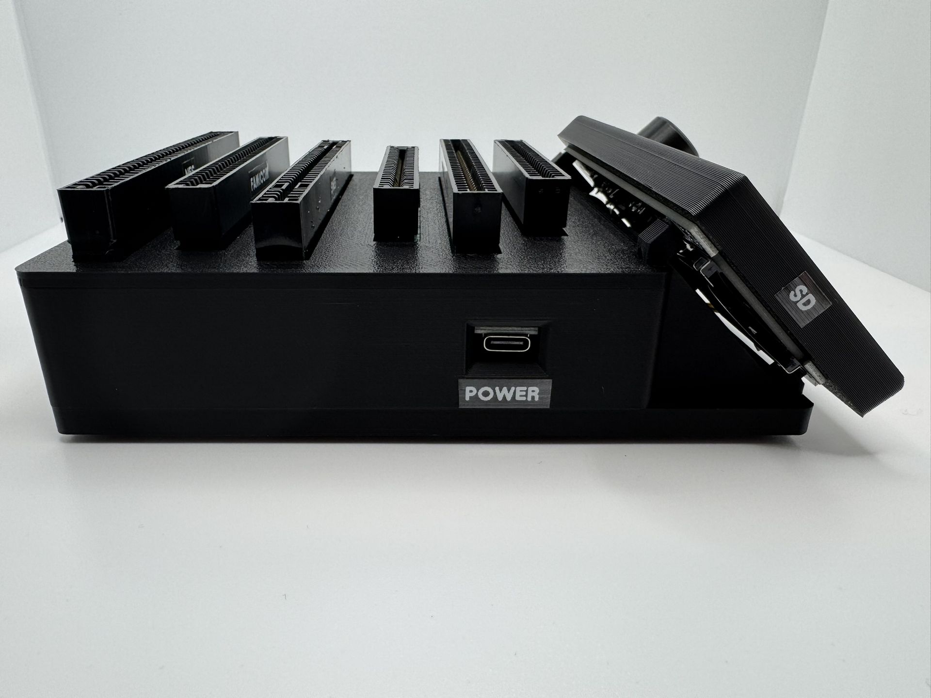 The OSCR is powered via USB-C. Backed-up files are stored on an SD card. Our OSCRs come with a 16GB or larger SD card, as well as a coin cell battery preinstalled for the real-time clock (see below). You only need to provide a USB-C cable and appropriate 5v power source, such as a phone charger or computer.