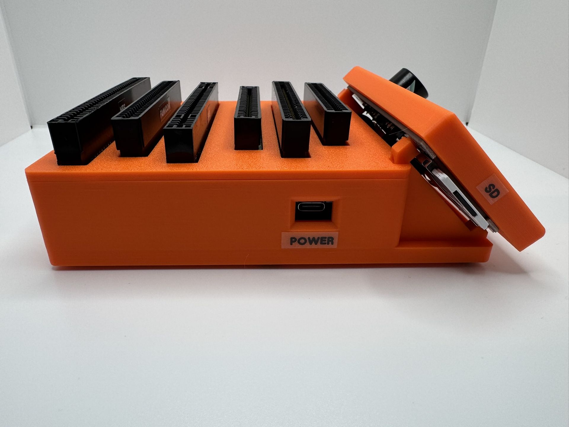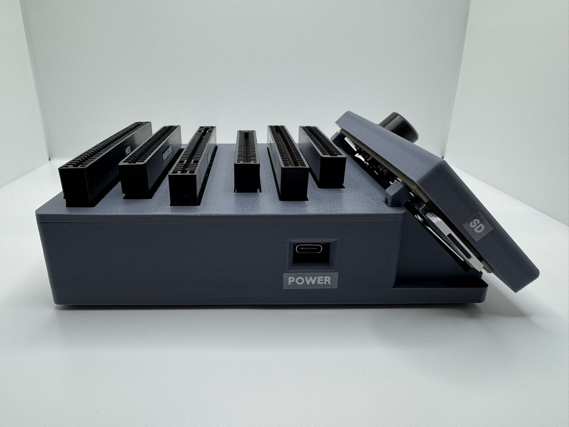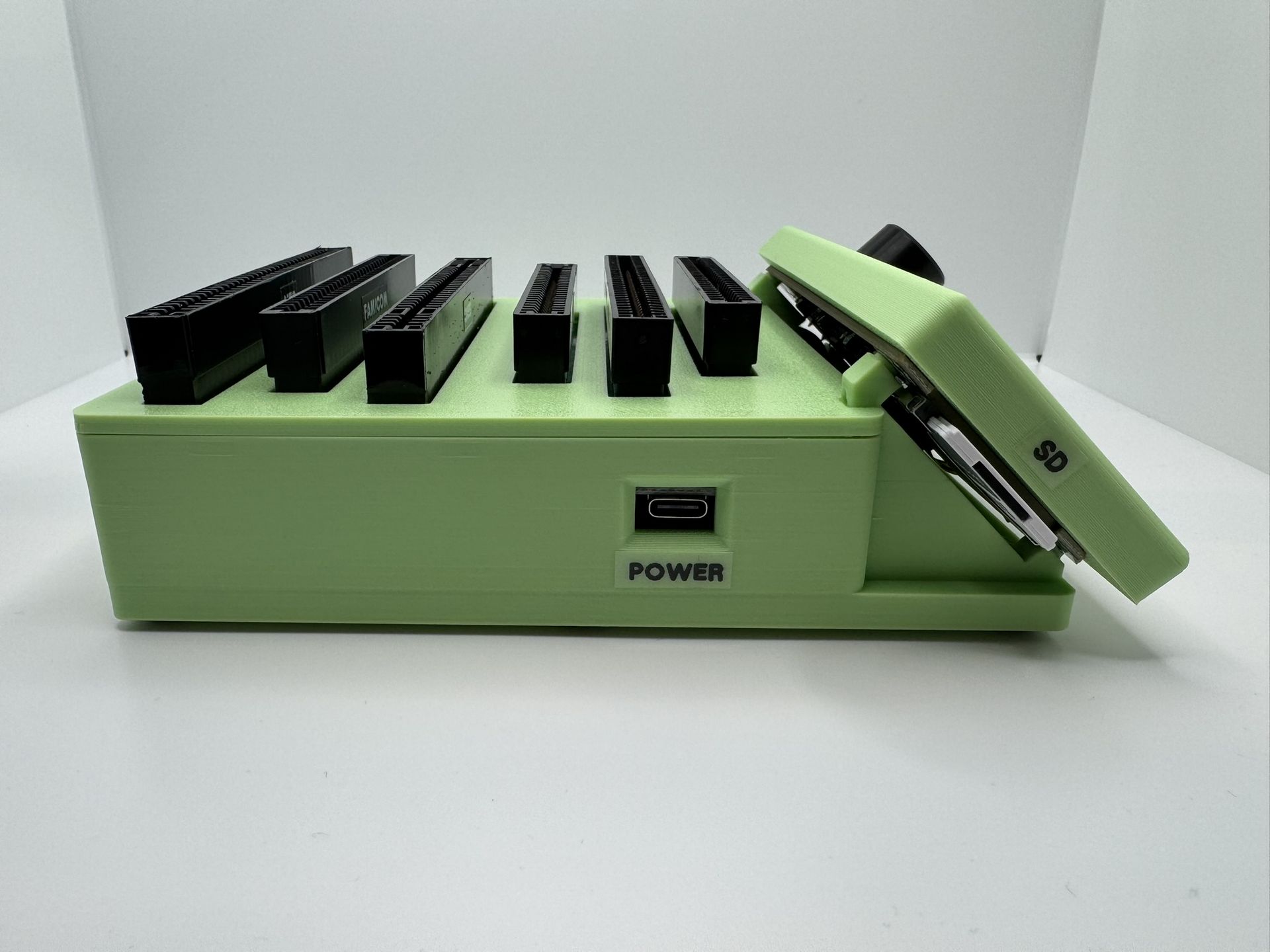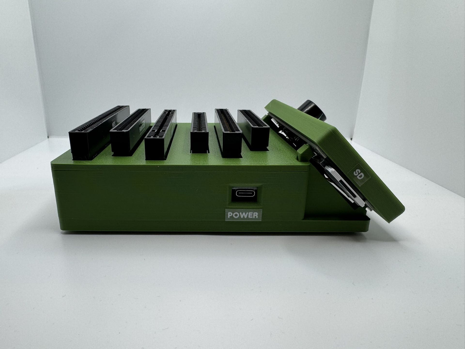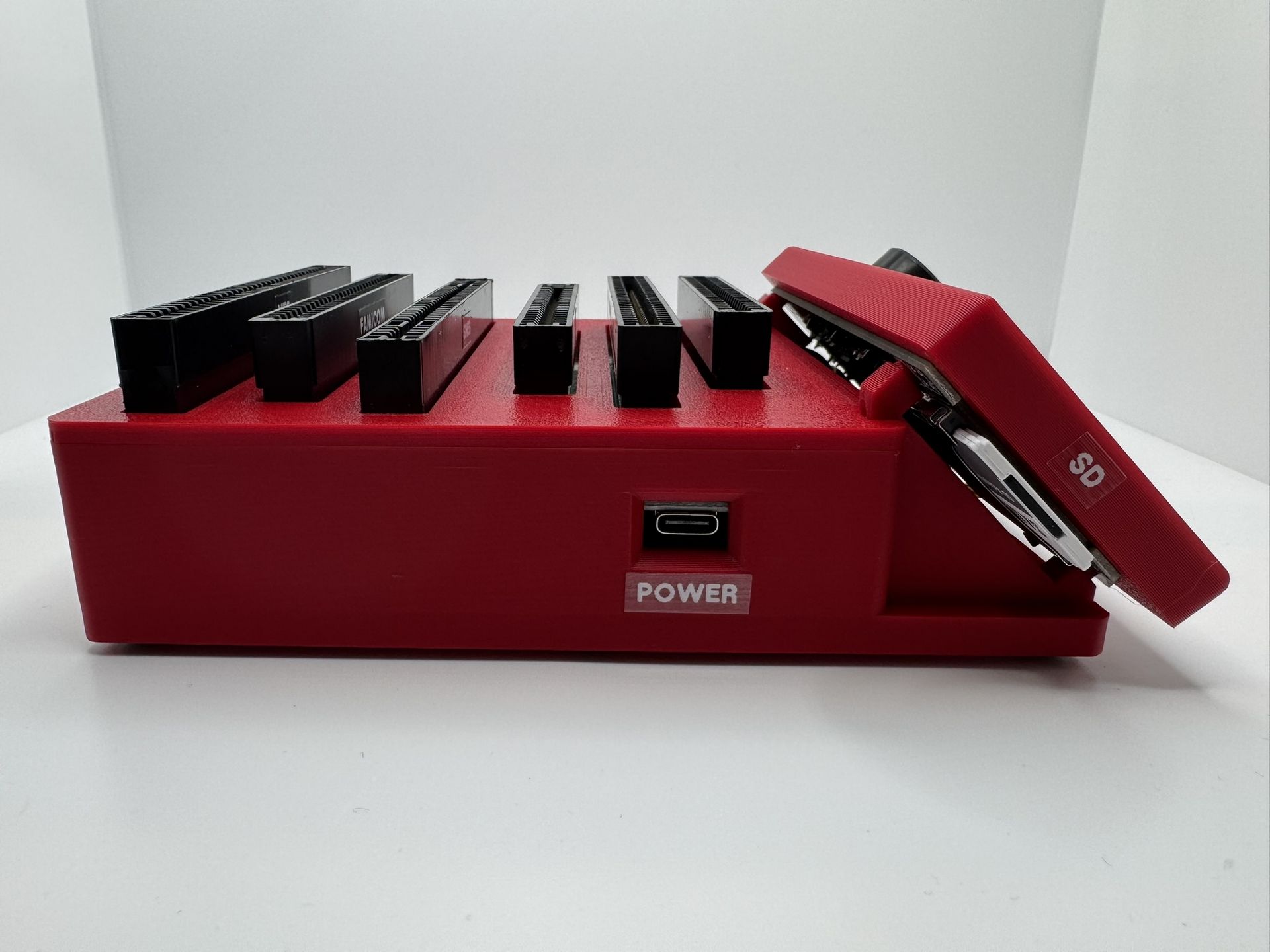 The OSCR is powered via USB-C. Backed-up files are stored on an SD card. Our OSCRs come with a 16GB or larger SD card, as well as a coin cell battery preinstalled for the real-time clock (see below). You only need to provide a USB-C cable and appropriate 5v power source, such as a phone charger or computer.